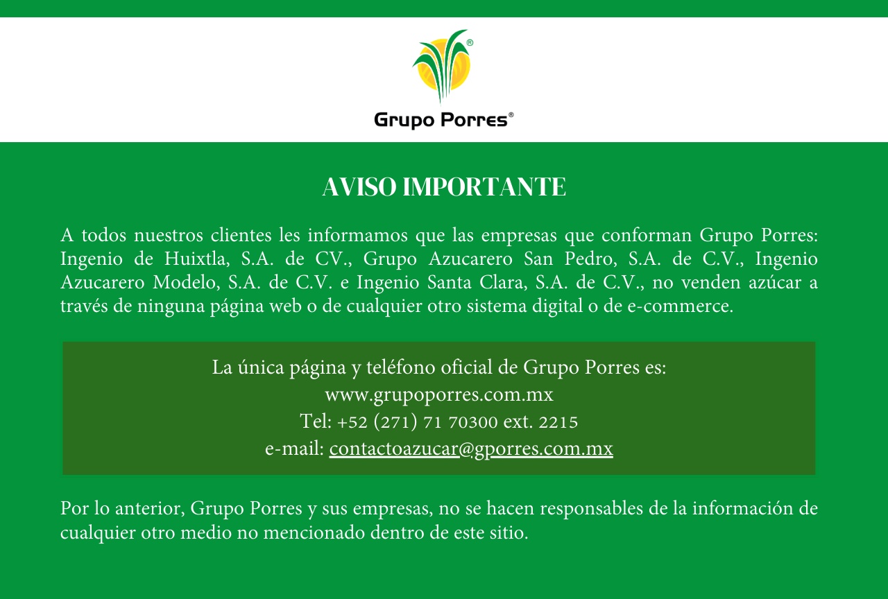 Grupo fundado por Don Antonio Porres Galán, con capital 100% mexicano, contamos con presencia en la industria avícola, la agroindustria azucarera y la industria de nutrición animal.